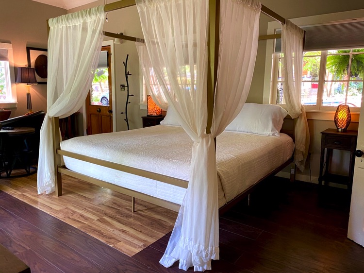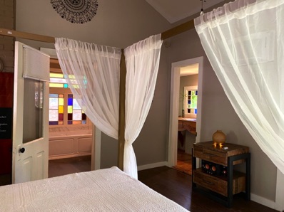 New renovation in 2020! Light, airy and modern with romantic king canopy bed, deep jacuzzi tub, new walk-in shower, fireplace and relaxing zen decor on delightful Spring Street, within two blocks of downtown!